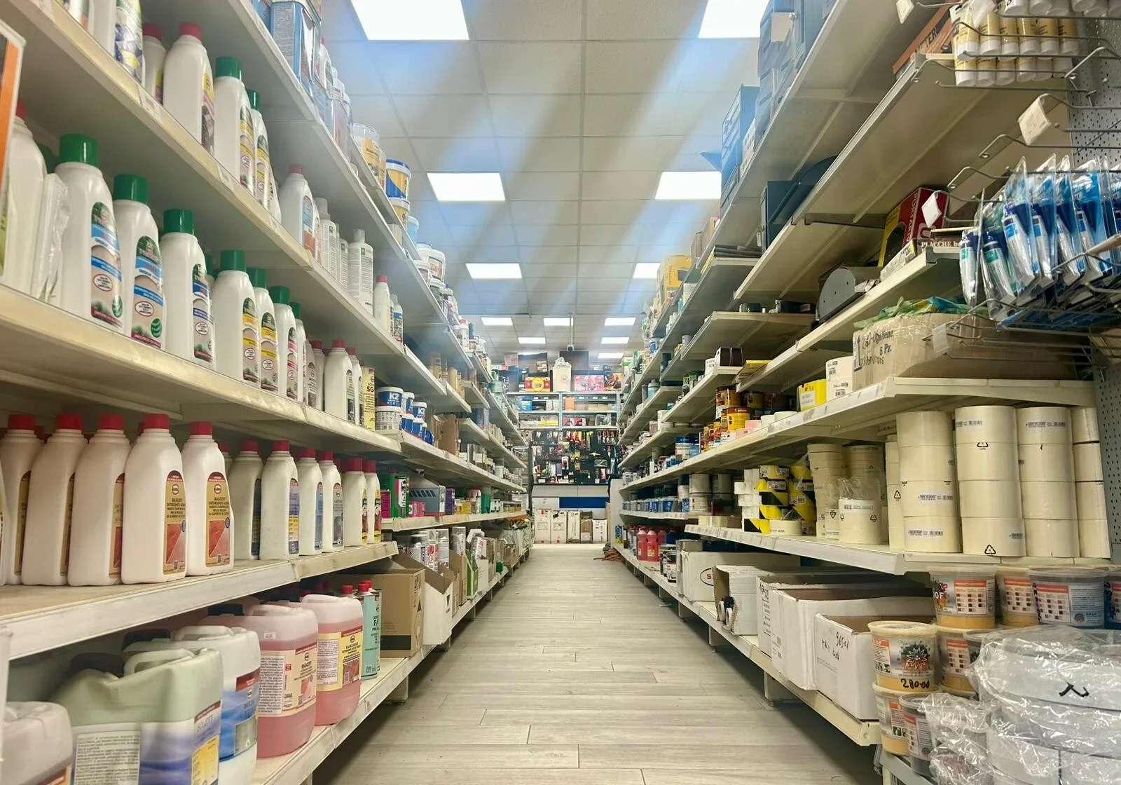 Materiale di Consumo: Buste rinforzate per calcinacci, taglierini industriali con lame a spezzare, metri a nastro professionali e chiodi comuni in acciaio di ogni misura.